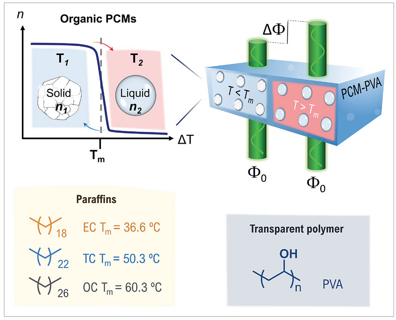 Conceptual scheme of the thermo-optical composite film based on organic PCMs.
